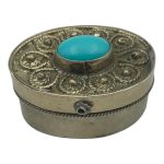 Gümüş Mineli Akik Taşı Aplikeli İç Kapak Kısmı Aynalı Enfiye Kutusu