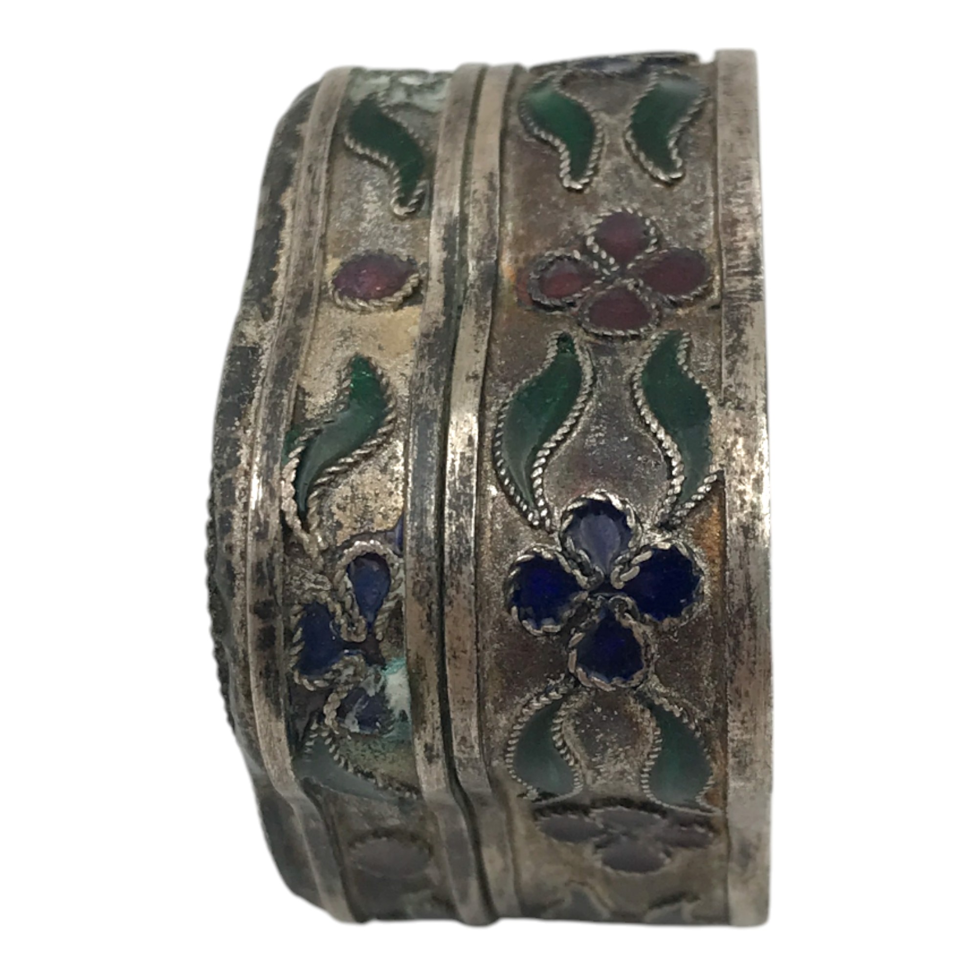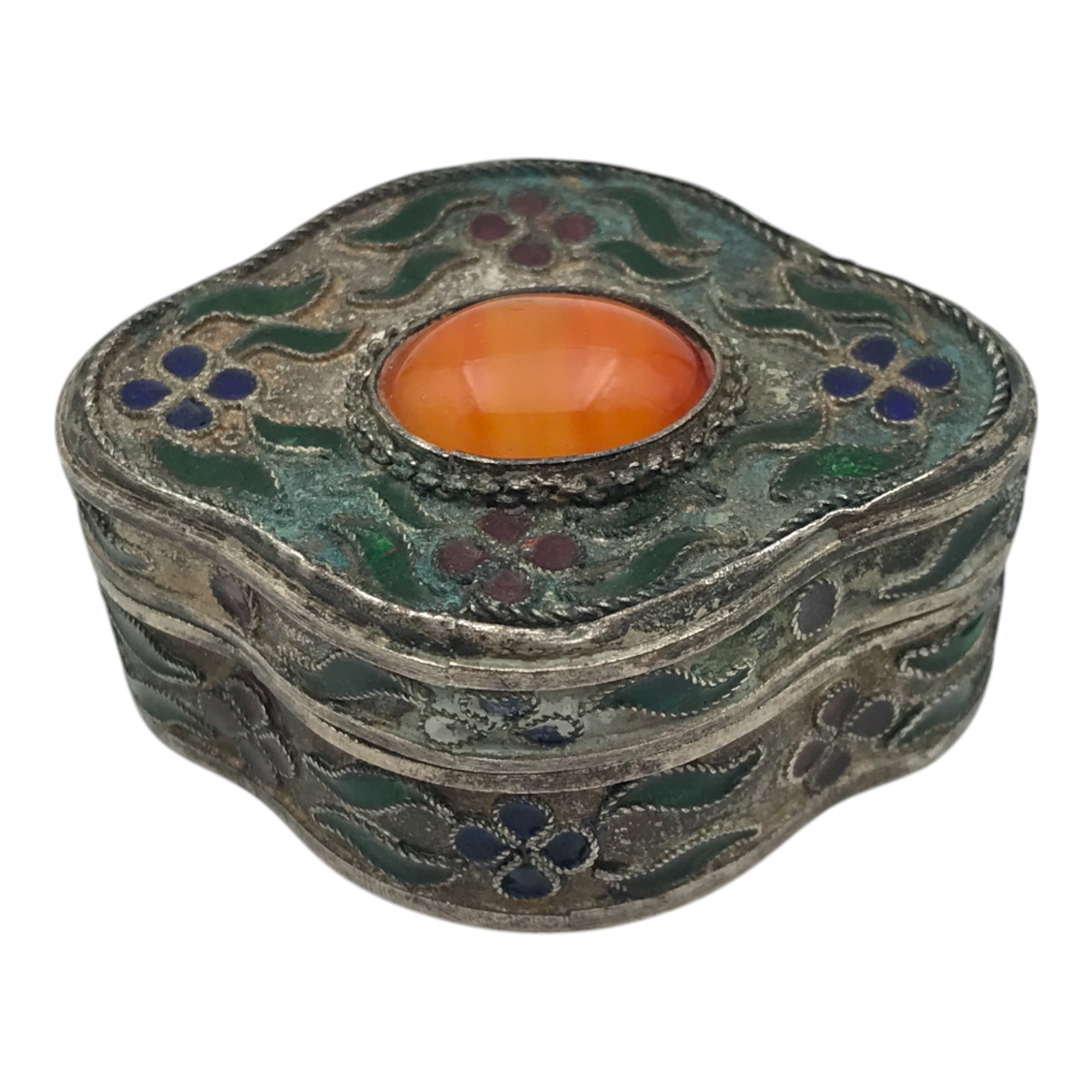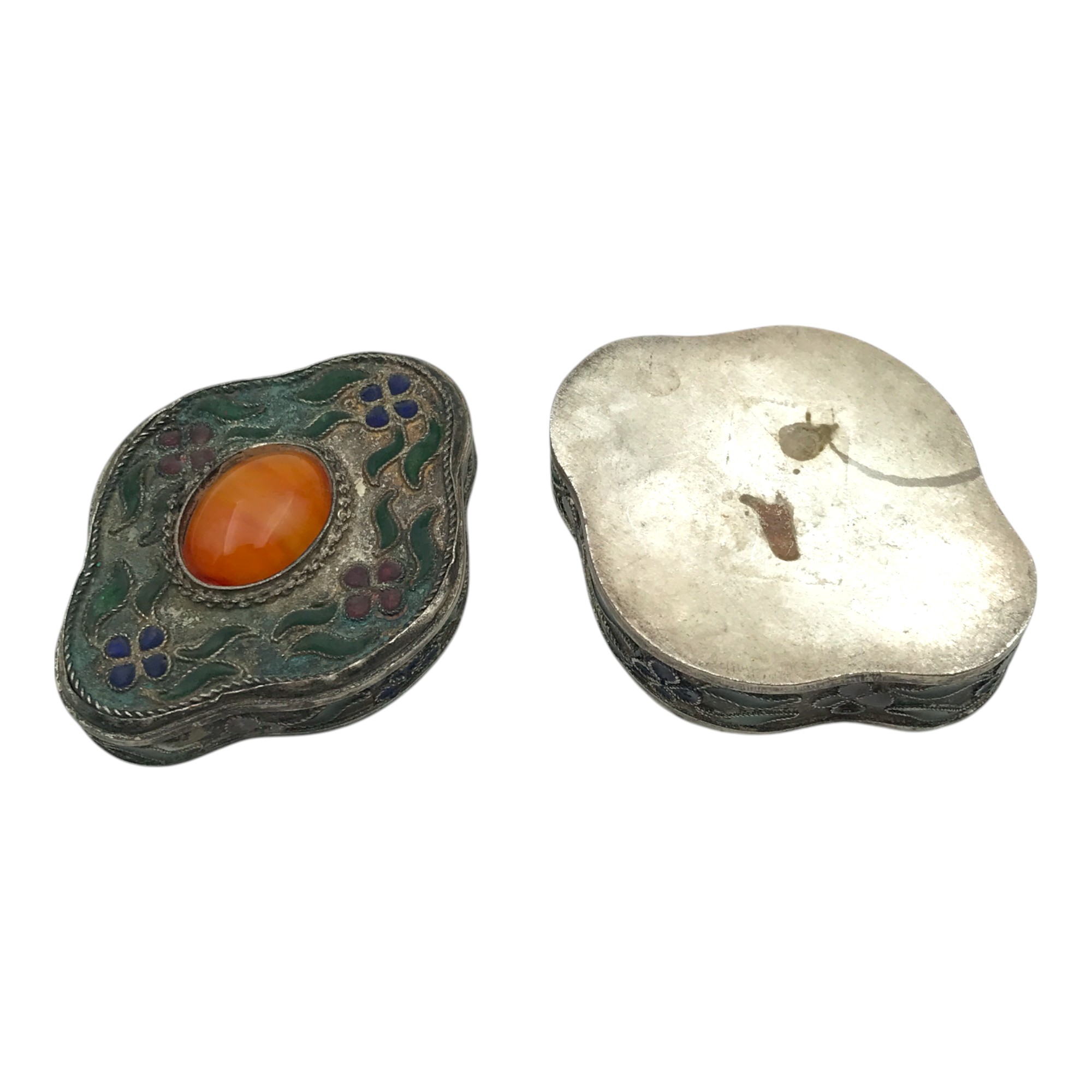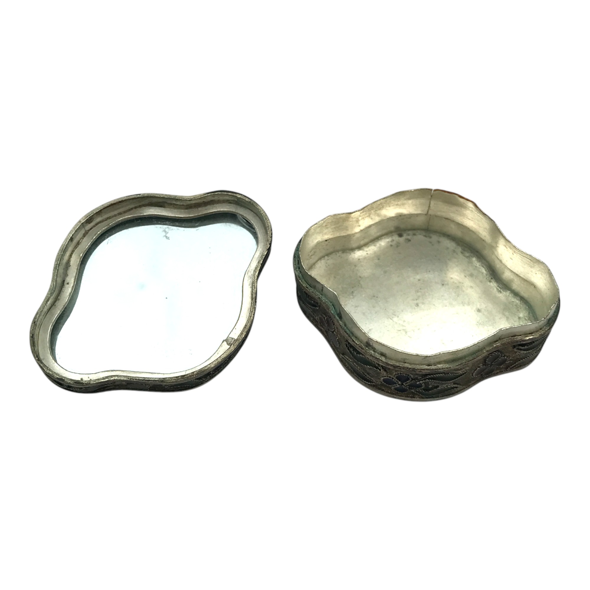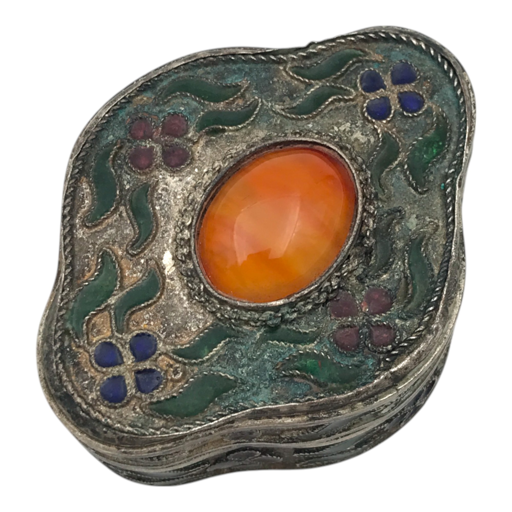 Gümüş Mineli Akik Taşı Aplikeli İç Kapak Kısmı Aynalı Enfiye Kutusu