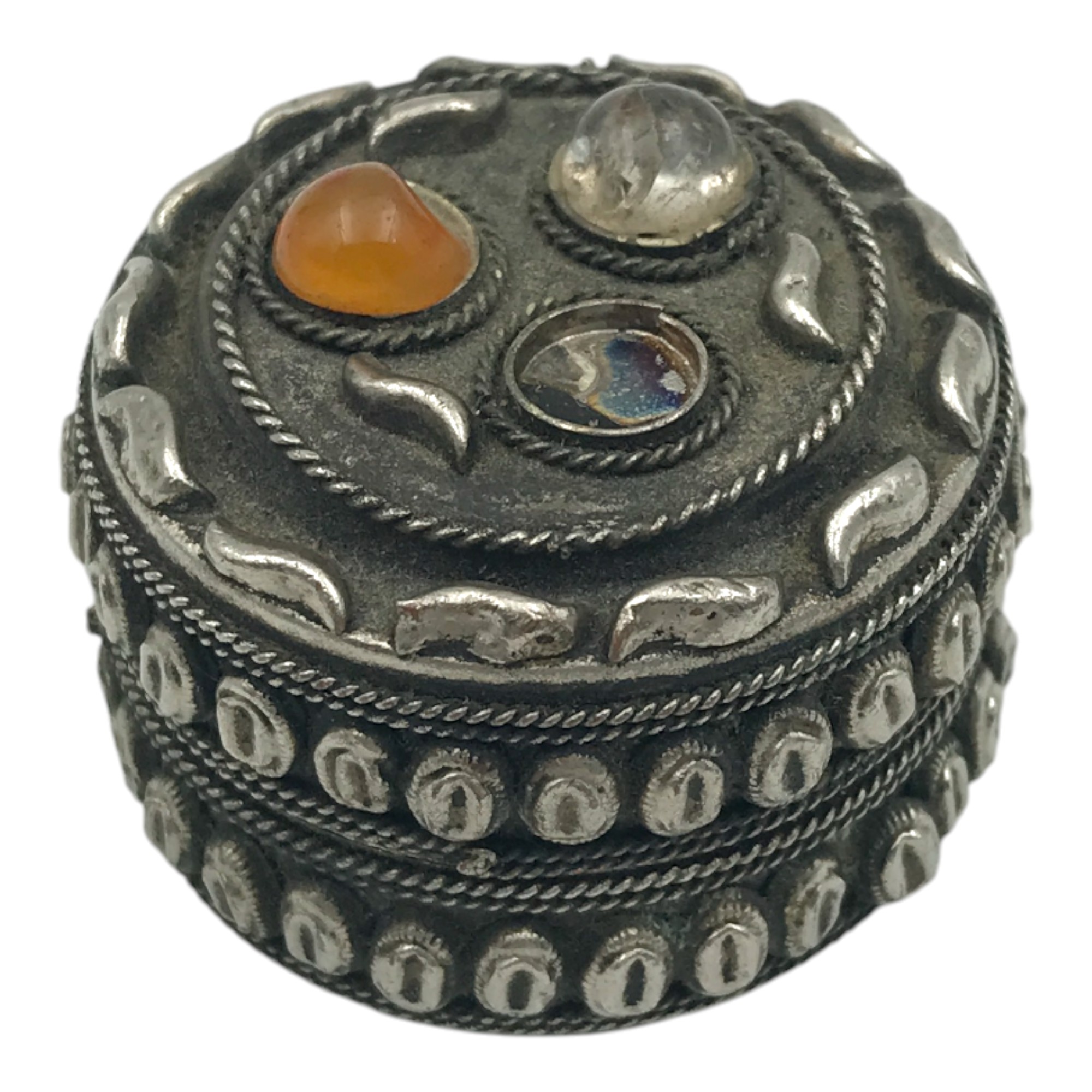 Gümüş Taş Aplikeli Güherse İşçilikli Enfiye Kutusu