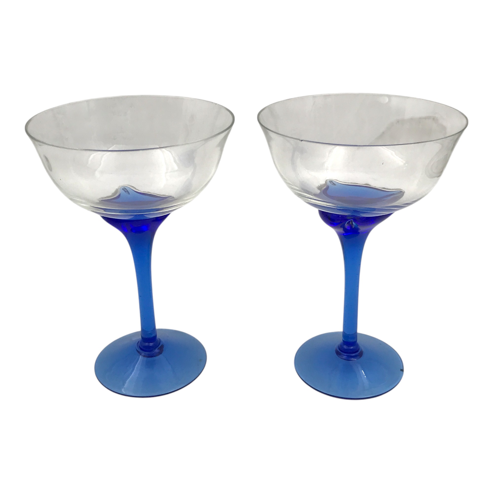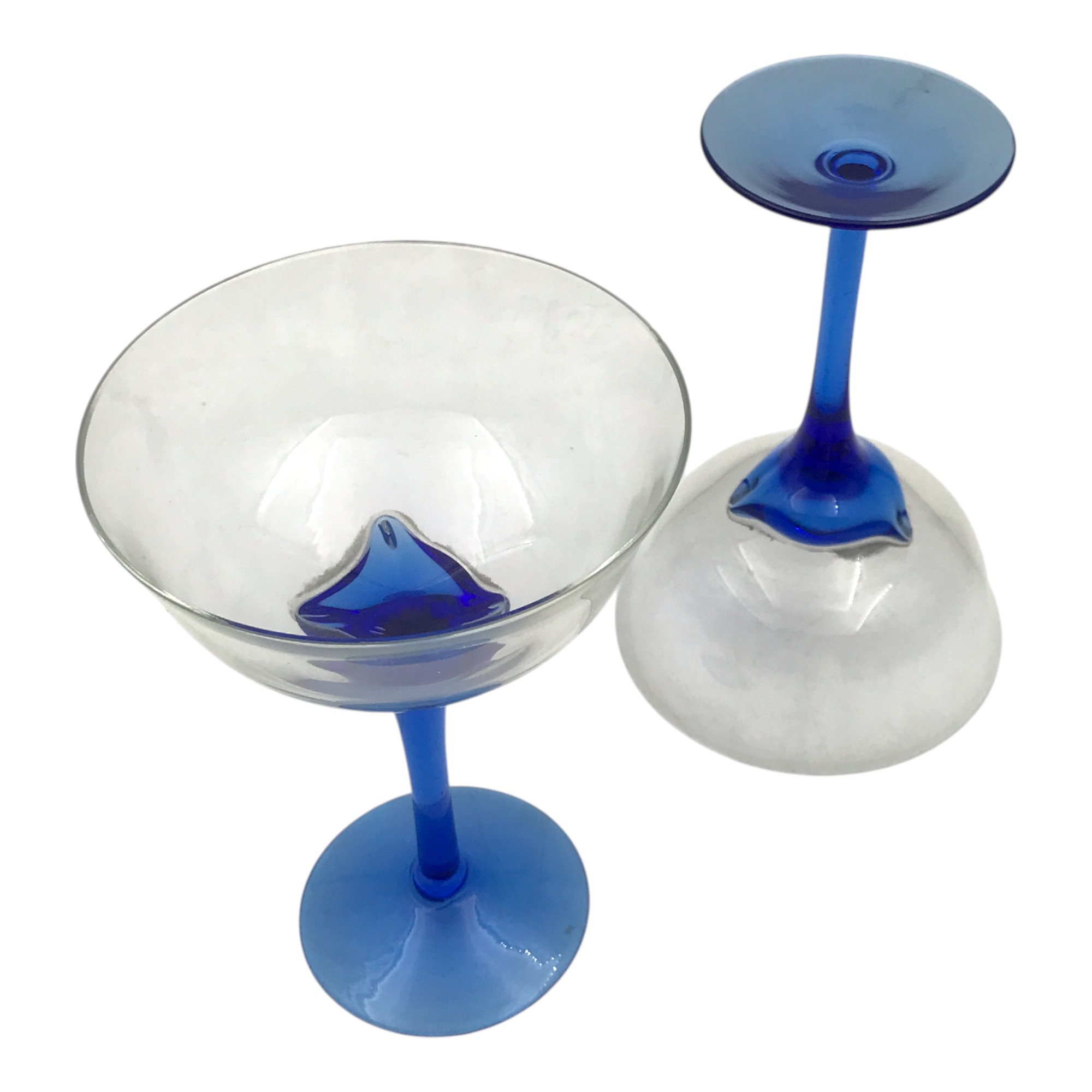 Çift Büyük Boy El Yapımı Ayak Kısımları Mavi Camdan Mamul Kadeh Takımı