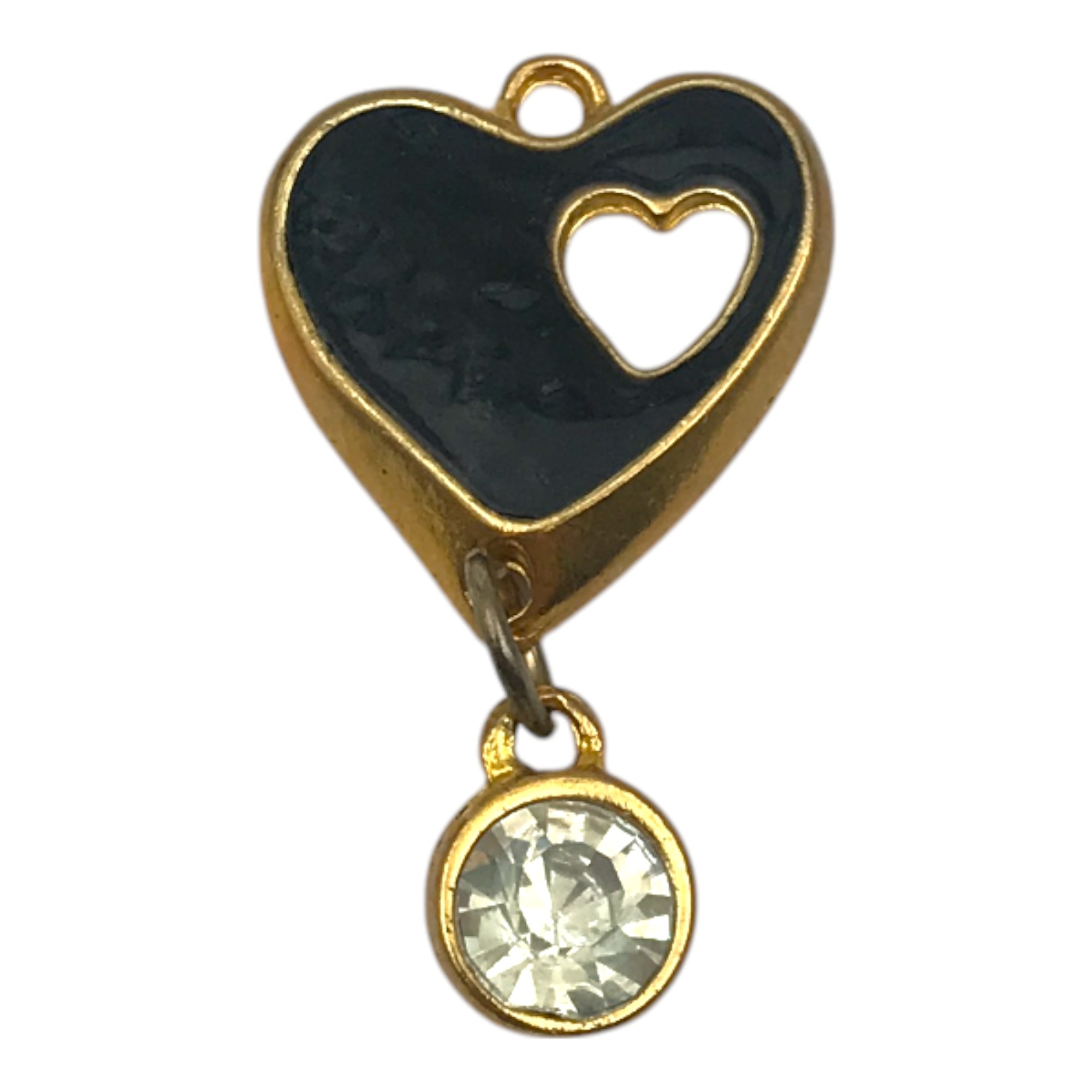 Kalp Formunda Siyah Lake ve Taş Aplikeli Kolye Ucu