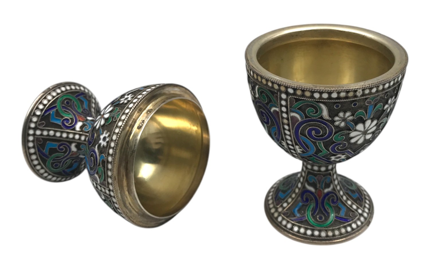 Kokoshnik ve Pyort Abrasimov Damgalı Paskalya Yumurtası Kadehe Dönüşebilir Tasarım 107 gram 10,5 cm