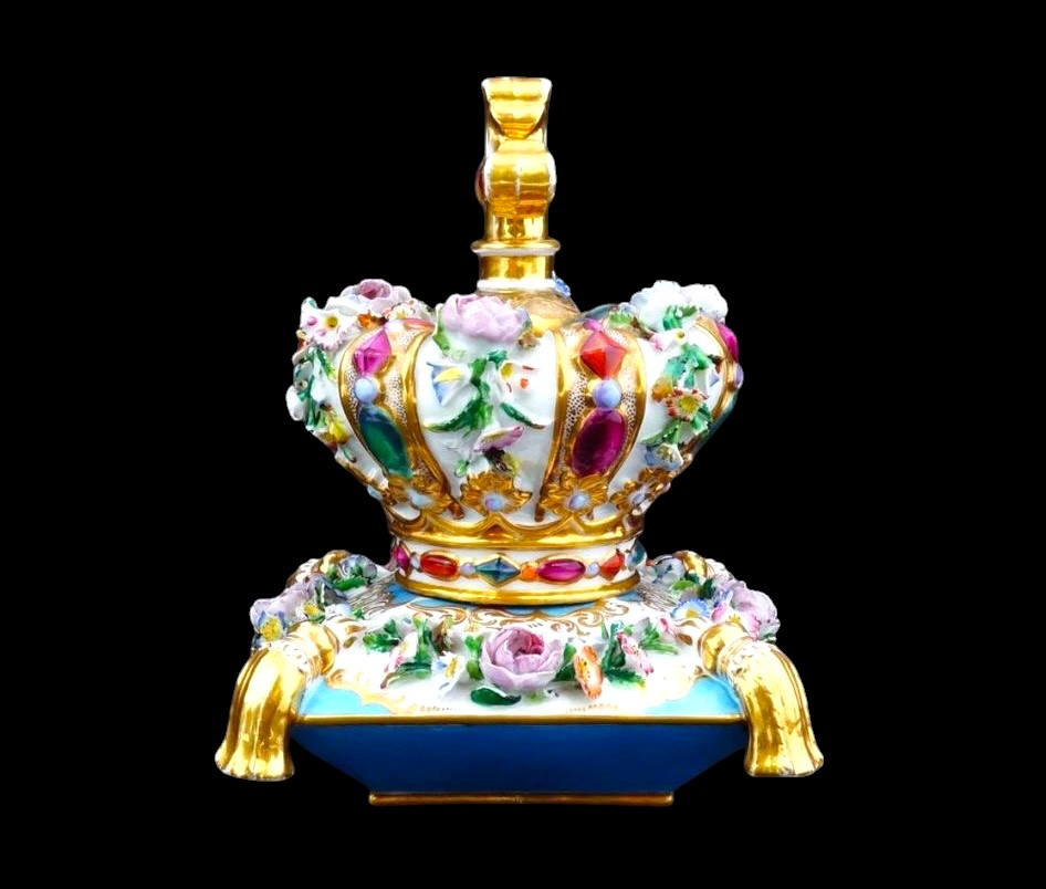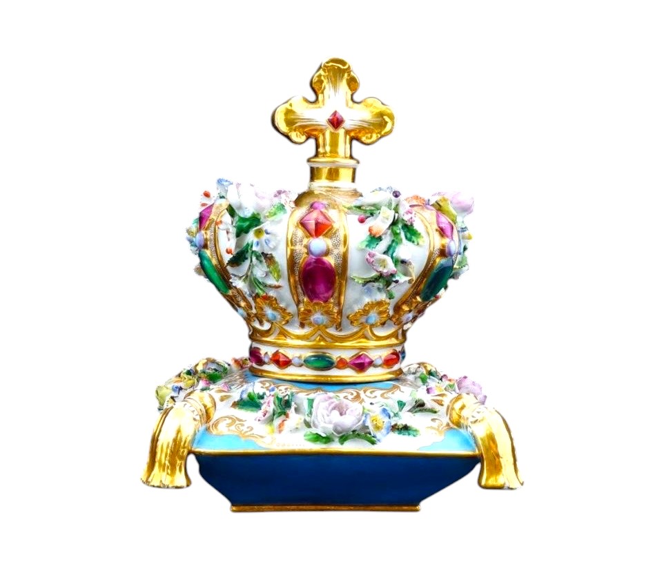 Jacob & Petit İmalatı 18. Yüzyıl El Boyama Altın Doreli Kraliyet İçin Yapılmış Kallavi Boyda Parfüm Şişesi